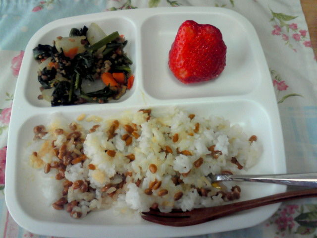 納豆ご飯は一番初めは食べてくれなかったので、お味噌汁に入れたりチャーハンにしたりいろいろしてきたけど食べなくて、最終わたしが納豆ご飯を食べるのをみて美味しそうに思ったのか、納豆ご飯食べるようになりました笑