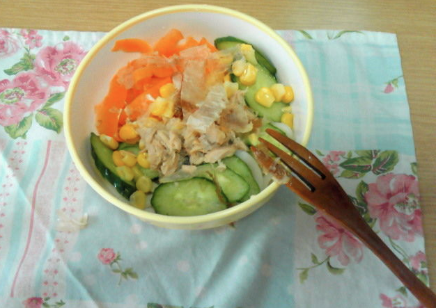 ☆サラダうどん(ツナ、コーン、きゅうり、人参)
