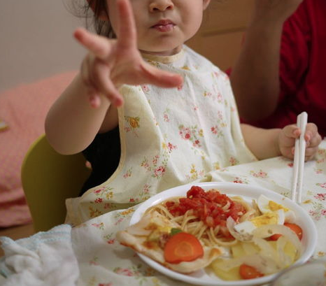 1歳半あたりから輪になったフォークやスプーンからまっすぐなフォークに移行して、2歳前にはお箸に移行していきました😄